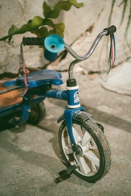 Pay attention to the seat adjustment mechanism, allowing for growth as your child develops. The frame also features mounting points for the parent handle and steering handle, facilitating the transition between stages. Ensure all welds are secure and the frame is stable. Understanding the frame’s construction is vital for safe and effective assembly and future maintenance of the Radio Flyer 4-in-1 Tricycle.