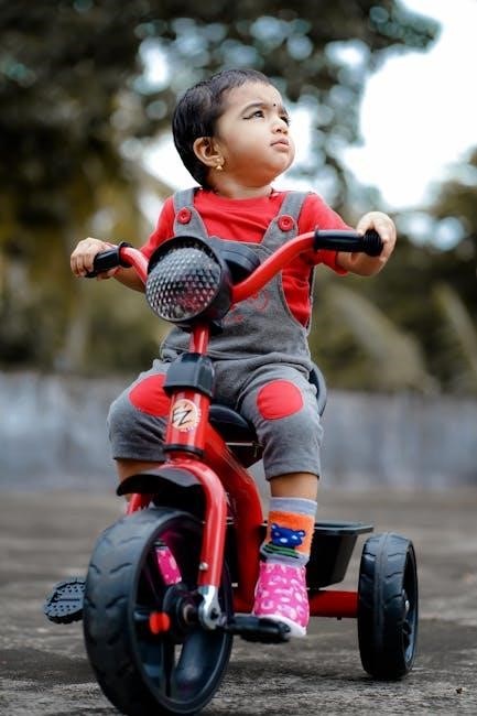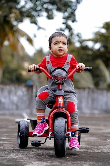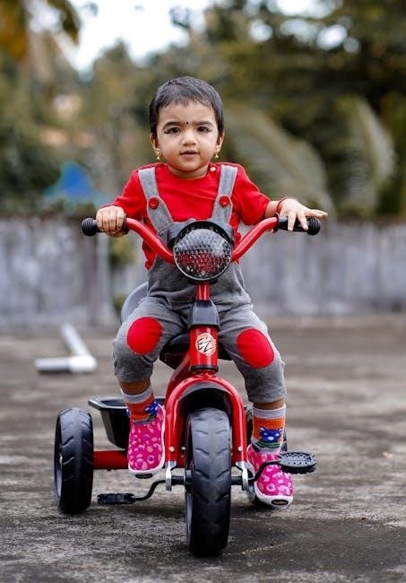 Finally, it reaches a fully independent riding configuration, allowing for confident self-propelled adventures. This adaptable design eliminates the need to purchase multiple tricycles as your child grows, providing exceptional value and longevity. This manual provides detailed instructions for each stage, ensuring a safe and successful assembly and riding experience. It’s a fantastic option for families seeking a durable and versatile tricycle.